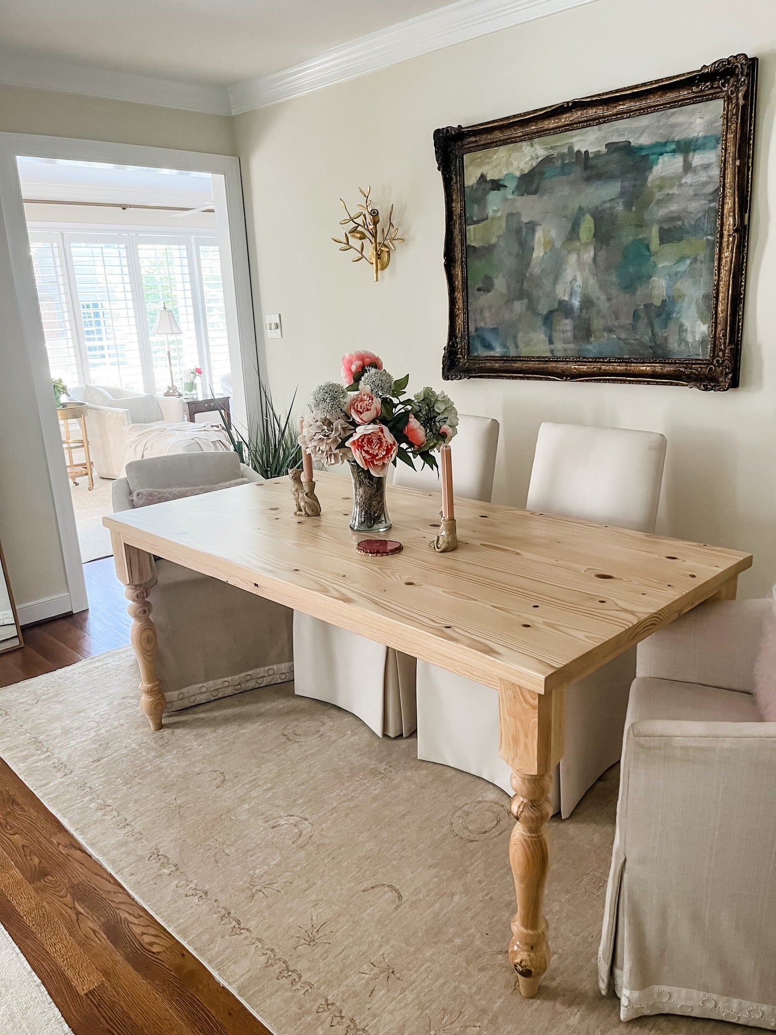 I don't know that the words exist to truly explain how much I love this table and bench. It is stunning, a real piece of art in our remodeled home (and FYI…I paid so much less than I had anticipated).